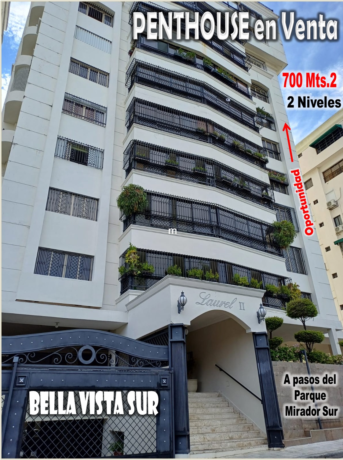 El Penthouse está ubicado en LA TORRE LAUREL II DE BELLA VISTA, en la Calle Central No. 3, Próximo a la Núñez de Cáceres, La Av. Anacaona, y el Parque Mirador Sur.